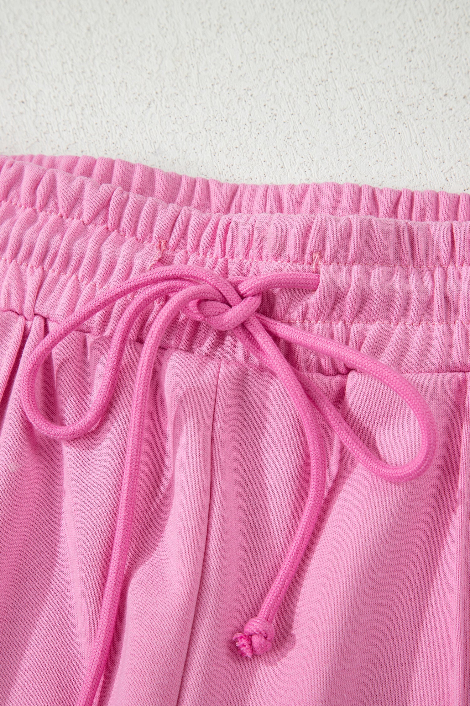 Matching drawstring sweatpants offer complete comfort with adjustable waist fit.